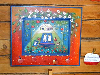 Raija Nokkalaa PakkahuoneellaMaanantaina avattiin Pakkahuoneen vierassataman näyttelytilassa Raija Nokkalan naivististen maalausten näyttely. Esillä on 21 työtä. Näyttelyn nimenä on "Omenapuun alla", joka kuvaa Pakkahuoneen vieressä olevaa suurta omenapuuta. Näyttely on esillä 10. elokuuta asti.Raija Nokkalan naivististen töiden suosio on viime vuosina kasvanut, ja mm. Iittalan naivistinäyttelyssä olevat hänen työnsä myytiin kaikki heti. "Jotkut keräävät töitäni, tuskin kuitenkaan sijoitusmielessä", Raija Nokkala sanoo. "Tännekin tuli Helsingistä varta vasten ostajia", hän kertoi näyttelyn avajaispäivänä. Ensimmäinen taidemenestys Raija Nokkalalla oli v. 1963, kun hän voitti Forssan torilla järjestetyn kilpailun, jossa liidulla taiteiltiin asvalttiin. "Isä oli Finlaysonilla töissä ja sekoitti taiteilijoille maaleja. Isä saattoi maalata pihakeinun käyttämällä kaikkia värejä, ei kuitenkaan harmaata. Ehkä värien käyttöni on perintöä", Raija sanoo. Harmaata Raijakaan ei käytä, muita värejä kyllä. "Tässä Omenanpuun alla -näyttelyssä olen käyttänyt ehkä punaista ja vihreää enemmän kuin aikaisemmin." Nokkala kertoo aloittavansa näyttelyn valmistelun kirjoittamalla muistilappuja, joita voi olla pitkin asuntoa. Siihen liittyy hänen ajattelutapansa; lehtiäkin hän lukee ajattelemalla kuvia. "Työt aloitan tekemällä kankaalle aiheen nopeasti, siten että aiheen ydin näkyy. Tällaisia aihekankaita saattaa olla pitkin asuntoa. Viimeistelyssä sitten vasta se suuri työ on", hän kertoo. Kaikkiin tauluihinsa Nokkalalla on myös oma tarinansa, mutta sitä hän ei aina halua kertoa, koska katsojan tarina saattaa poiketa siitä täysin. Raija Nokkalan mielestä naivististen täiden suosio on viime vuosina kasvanut. Oma ansio siihen on Iittalan naivistikesää jo 15:ttä kertaa pyörittävällä perheellä.