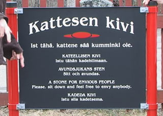 Kattesen kivi kaikkien käytössä Laitilassa"En ol kattene, mutt en sois kellä mittä oleva" huokaa vanha laitilalainen sananparsi. Kateus on kamalaa. Sen tiedetään myrkyttävän ilmapiiriä ja latistavan innostusta. Toisaalta kateus voi olla hyvääkin, elinvoimaa ja yritteliäisyyttä lisäävää. Kateellisiksi väitetyille laitilalaisille on nyt saatu oma monumenttinsa.