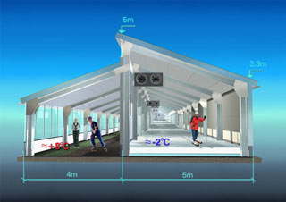 Toimitusjohtaja Mauri Kontu esitteli hanketta seminaarin osanottajille. Mm. käyttökustannukset ovat perinteistä jäähdytysjärjestelmää edullisemmat. Mm. lumiosuuden alle tuleva putkisto voi olla perinteistä pienempää ja harvemmassa. Lisäksi pumpputehoa vaaditaan vain kymmenesosa perinteisestä.
